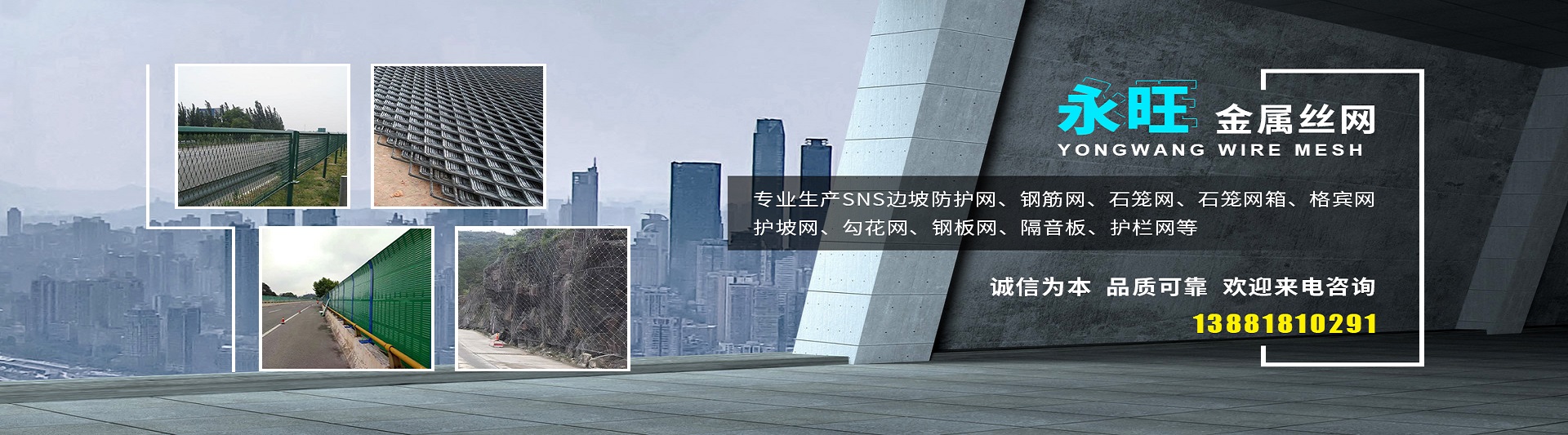 成都市永旺金屬絲網(wǎng)有限公司是一家研發(fā)、生產(chǎn)、加工、銷售為一體的責(zé)任制企業(yè)公司。本公司“以誠信為本、以服務(wù)社會已任、以科學(xué)創(chuàng)新為理念”。 專業(yè)生產(chǎn)SNS邊坡防護(hù)網(wǎng)、鋼筋網(wǎng)、石籠網(wǎng)、石籠網(wǎng)箱、格賓網(wǎng)、護(hù)坡網(wǎng)、勾花網(wǎng)、鋼板網(wǎng)、隔音板、護(hù)欄網(wǎng)等。產(chǎn)品主要運用于鐵路,高速公路,橋梁,隧道,機(jī)場,礦山,河道,球場,碼頭,港口等多個領(lǐng)域。 本公司期待與您長期合作,希望與您共創(chuàng)輝煌,我們愿與各業(yè)朋友精誠合作,共創(chuàng)美好未來,希望各業(yè)朋友來函來電